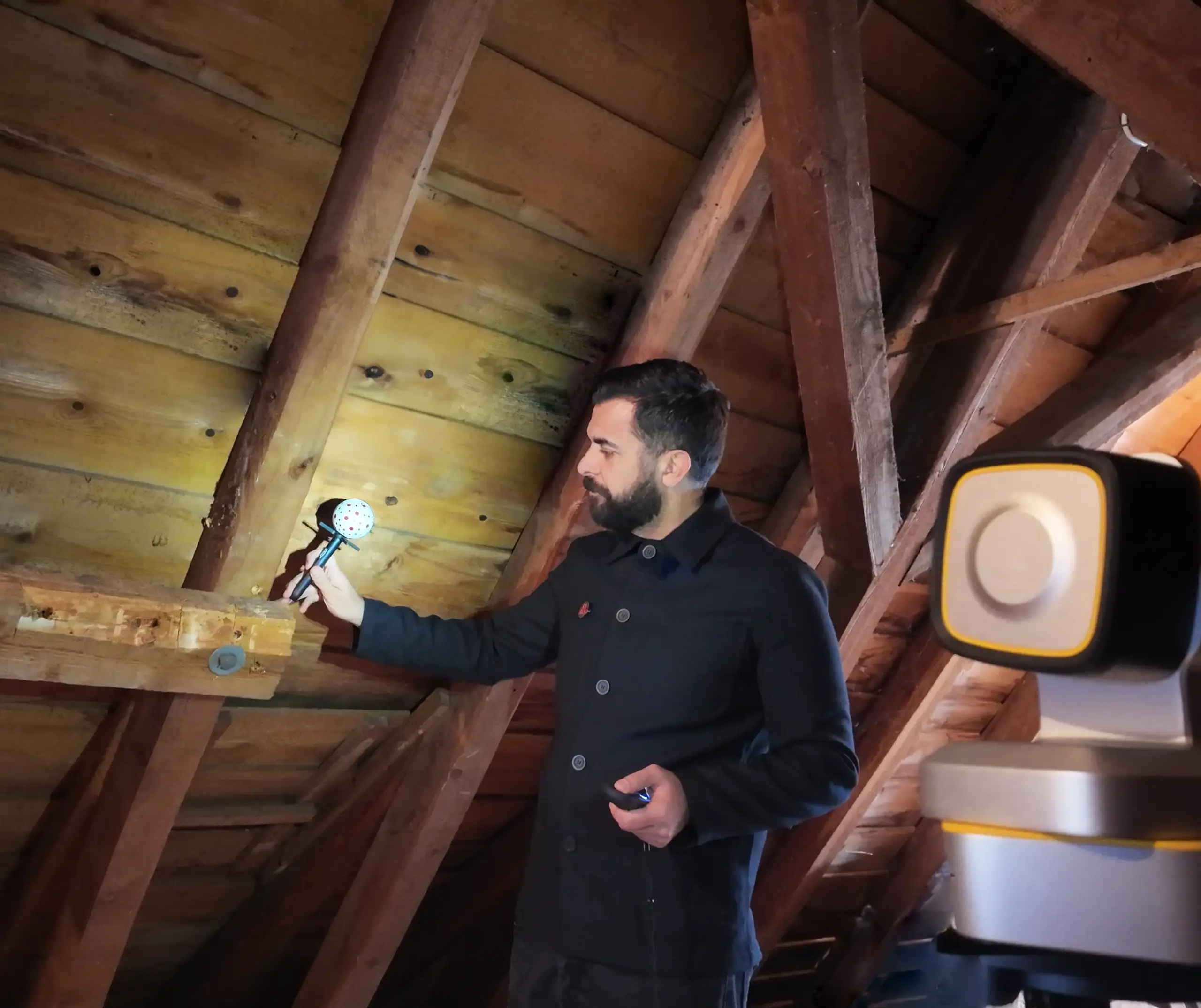 Bestandsaufnahmen und Projektionen auf vertikalen und horizontalen Ebenen. Der vPen mit kalibrierter Kugel-Technologie erfasst automatisch Punkte mit 1 mm Genauigkeit auf 10 m – ohne Nachjustieren. Treppenstufen, Nischen und Arbeitsplatten sind im Nu vermessen. Selbst schwer zugängliche Punkte erreicht die Spitze des vPen mühelos.