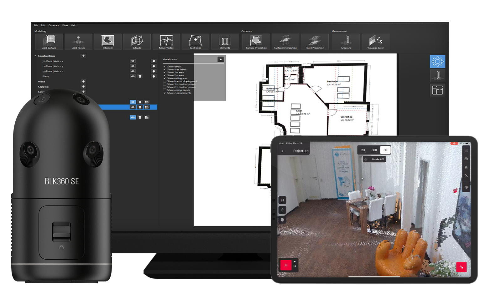 The Leica BLK360 SE is a user-friendly laser scanner specifically designed for users who want to capture and model small to medium-sized projects.