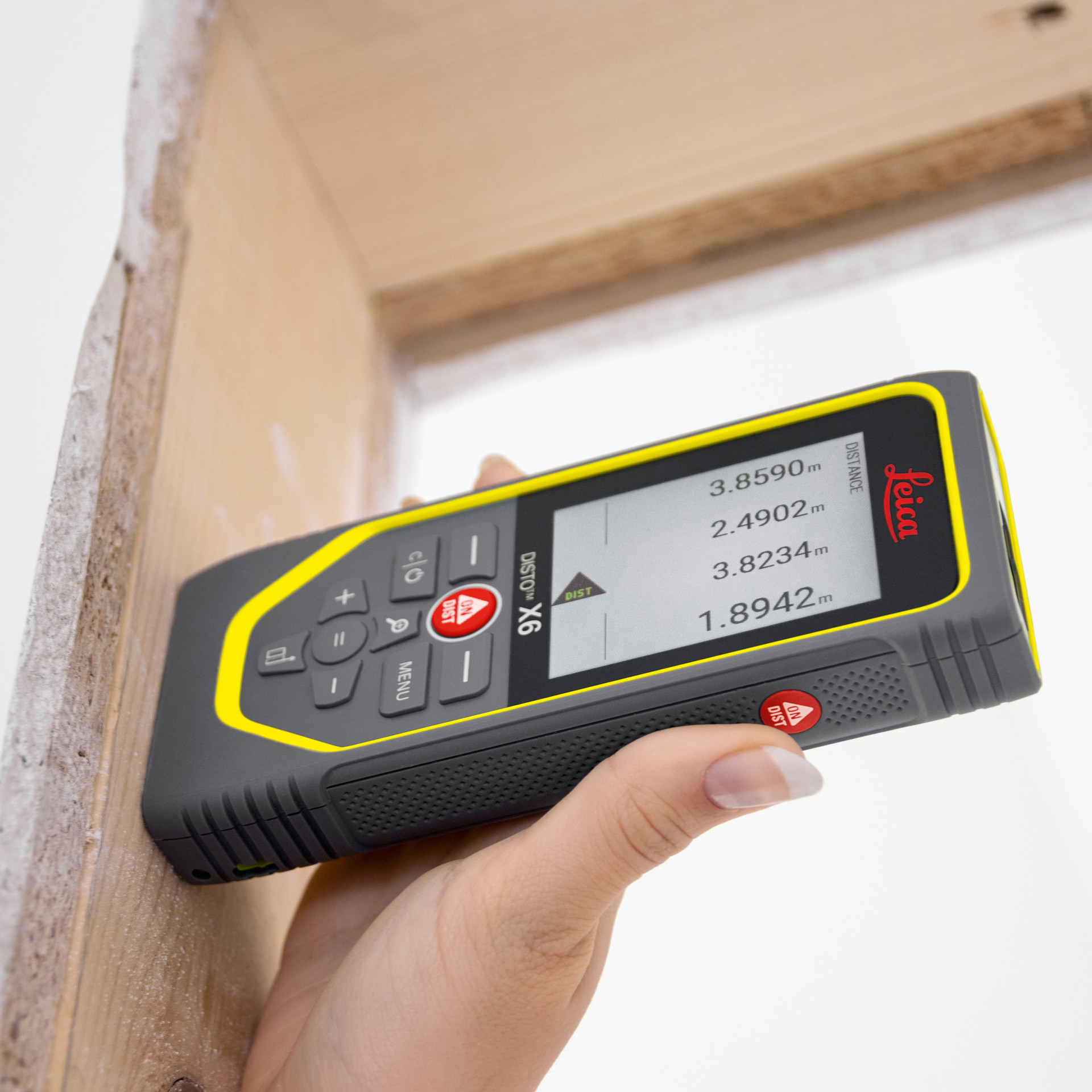 • The Leica DISTO™ X6 is equipped with a well-lit, 2.8 inch touchscreen which means it is quick and easy to operate.