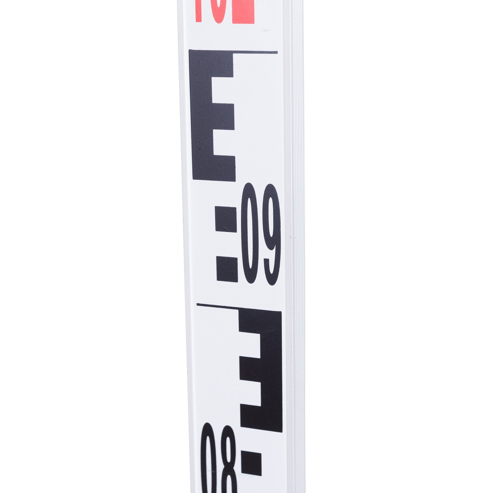 Telescopic measuring staffs for levelling including bag and spirit level. This tenimeter can be extended telescopically to 3 m and is convenient to transport with its short transport length and low weight. The E graduation on the front with alternating red and white painted metre pieces. Model 18201000 has a mm graduation on the back for measuring clear heights. The telescopic levelling meters are robust and always meet the daily requirements on construction sites. The imprint is protected from abrasion by protruding edges. The stable push-button grid prevents the individual parts from collapsing. Due to the precise guidance of the individual elements, it is smooth-running and does not jam.