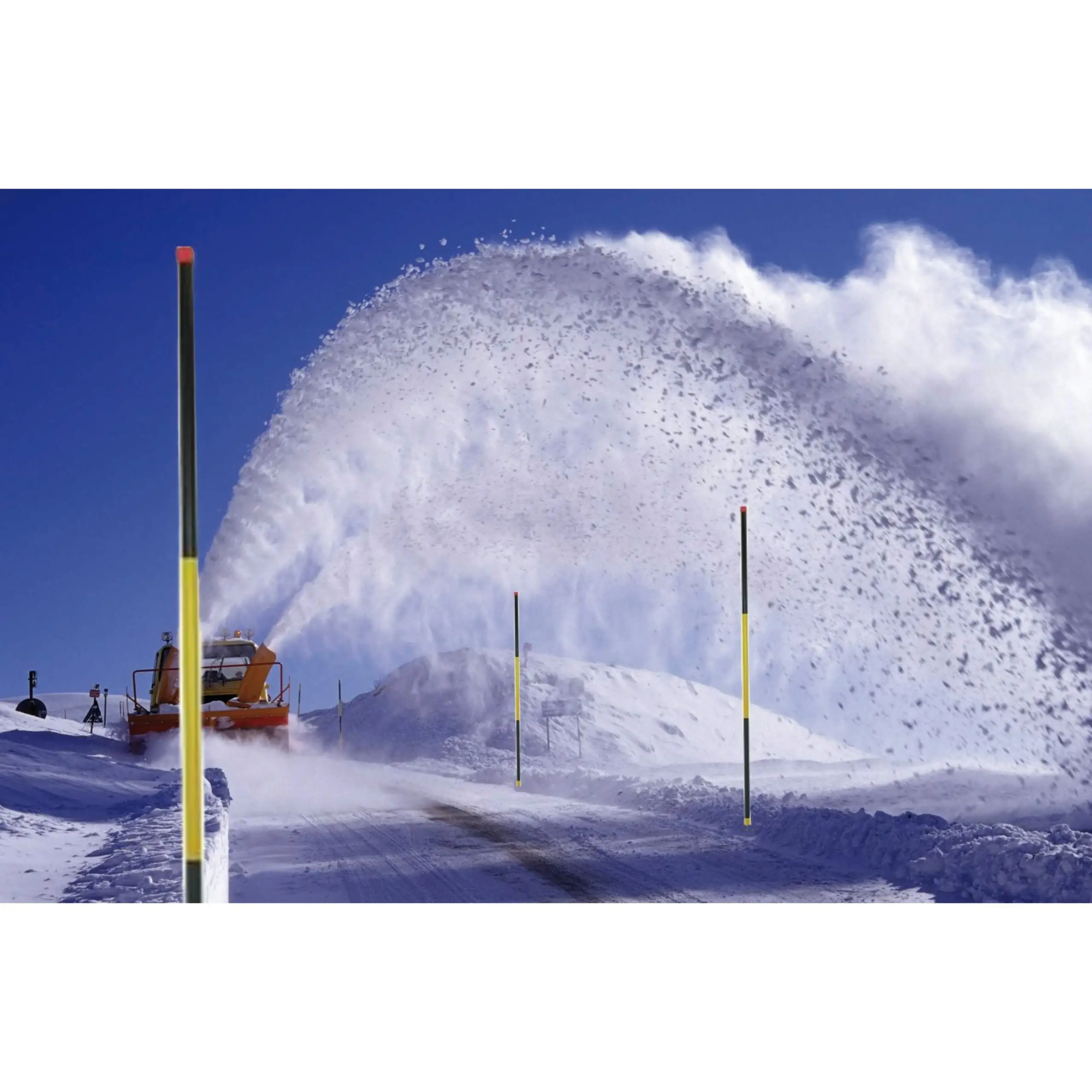 Signalisation sûre du tracé de la route en cas de couche de neige importante.
