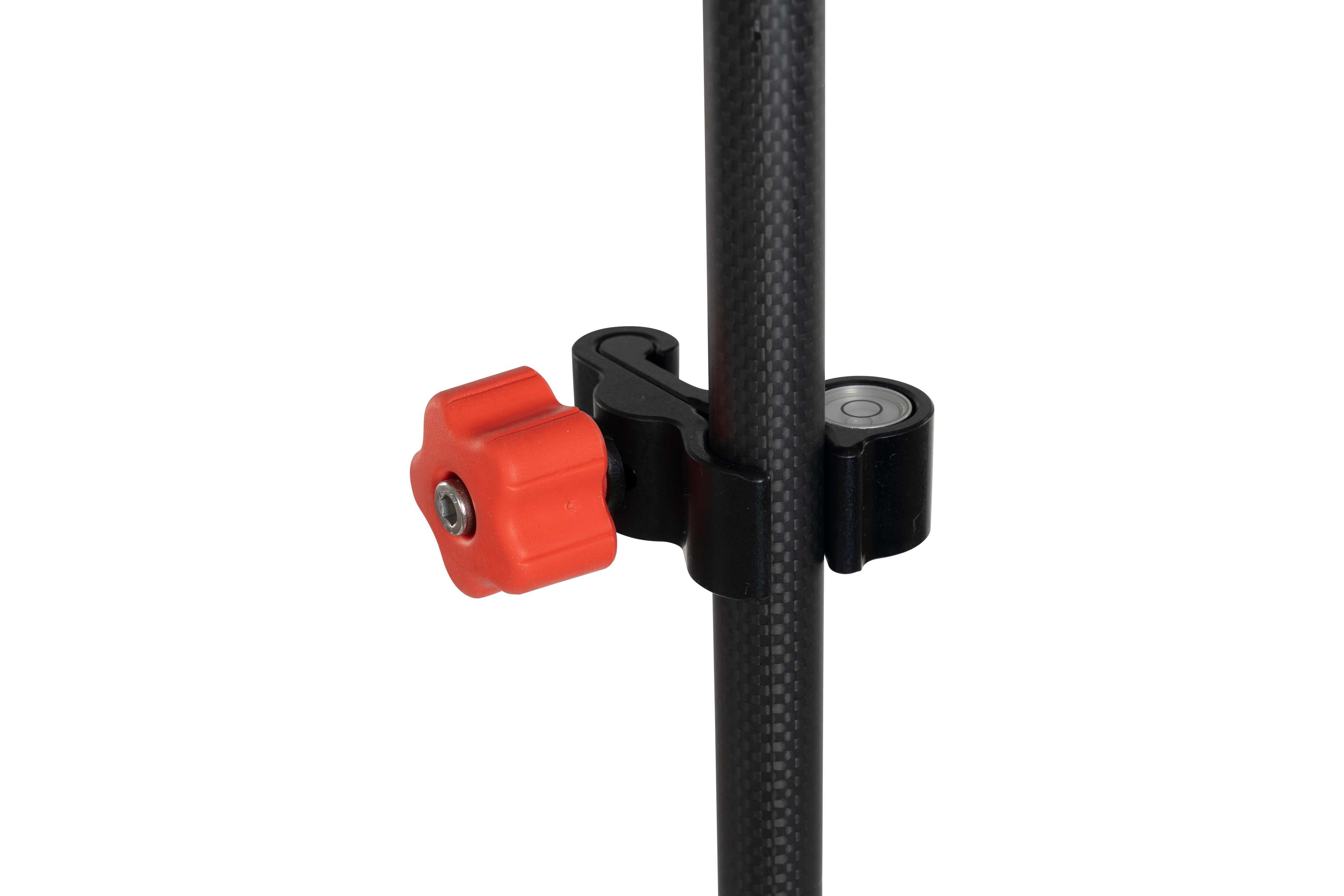 L'unité de serrage possède également un niveau sur la face inférieure. Celui-ci peut être fixé à un prisme ou à une tige GNSS à n'importe quelle hauteur, car les ordinateurs de terrain fixés à la tige bloquent souvent la vue du niveau de la tige.