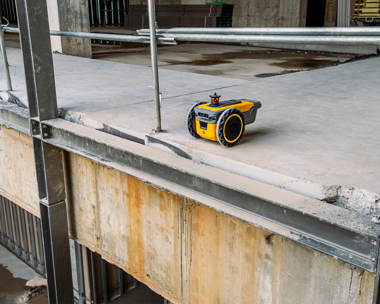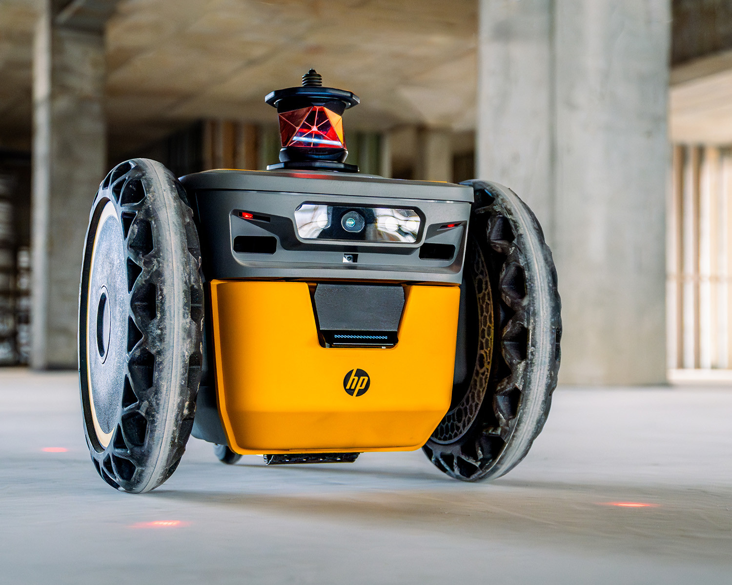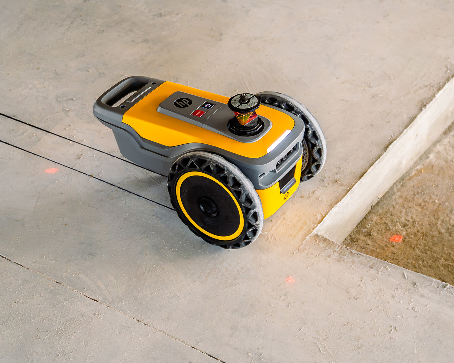 The autonomous HP SitePrint construction site printing robot prints digital floor plans quickly, accurately, and easily onto the construction site floor. The HP SitePrint navigates using digital layout plans and a total station (Leica, Trimble, or Topcon). After a brief setup, the robot uses the data from the plans and marks the designated points on the construction site. Setup is user-friendly and requires no special technical expertise.