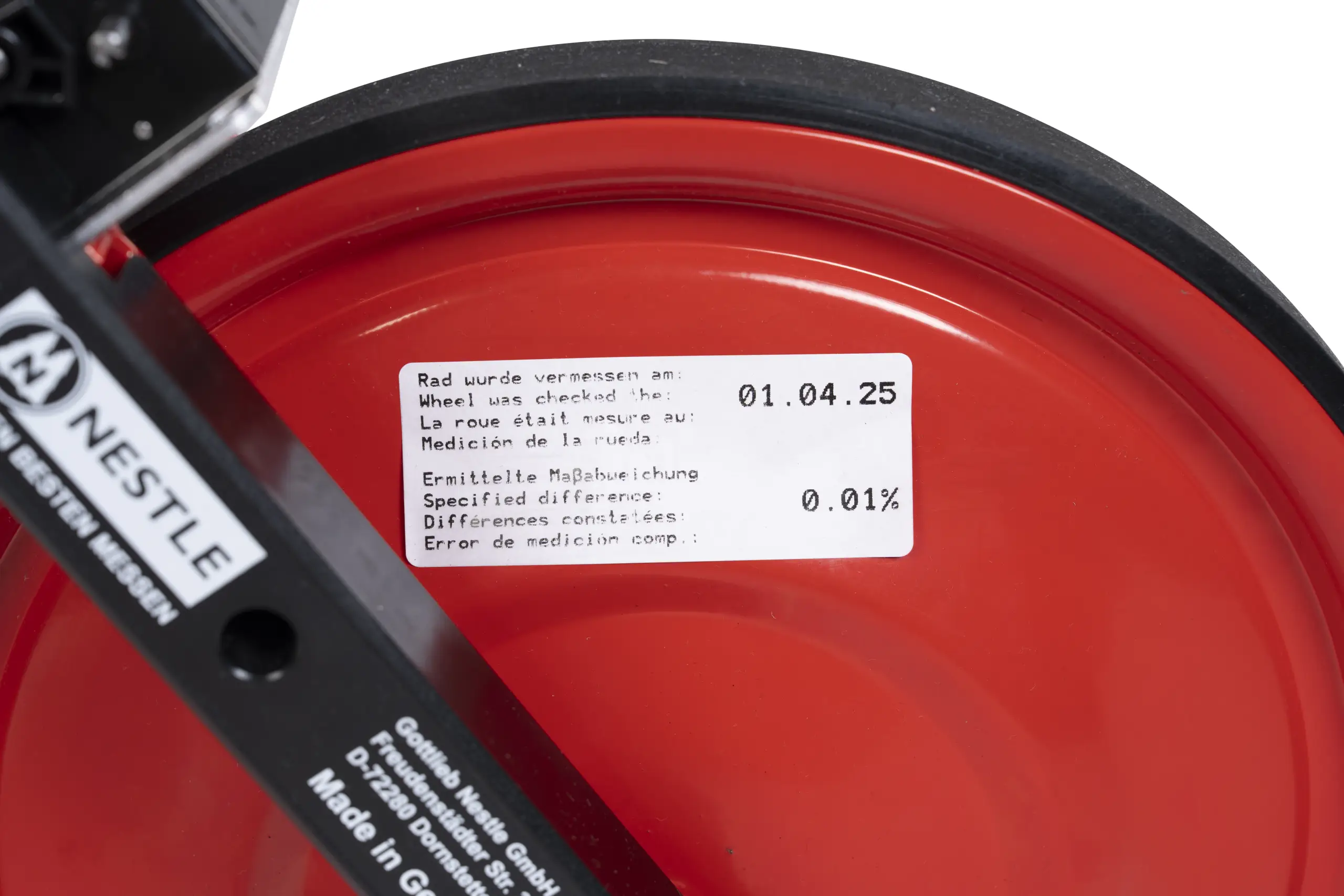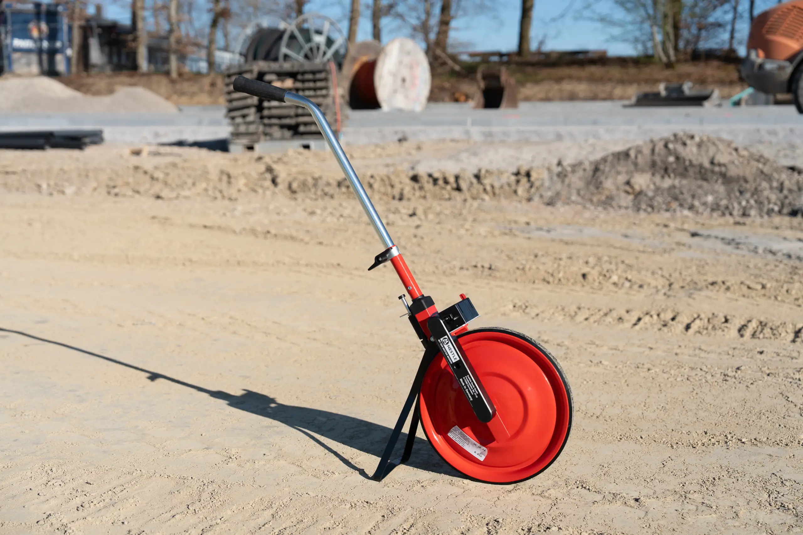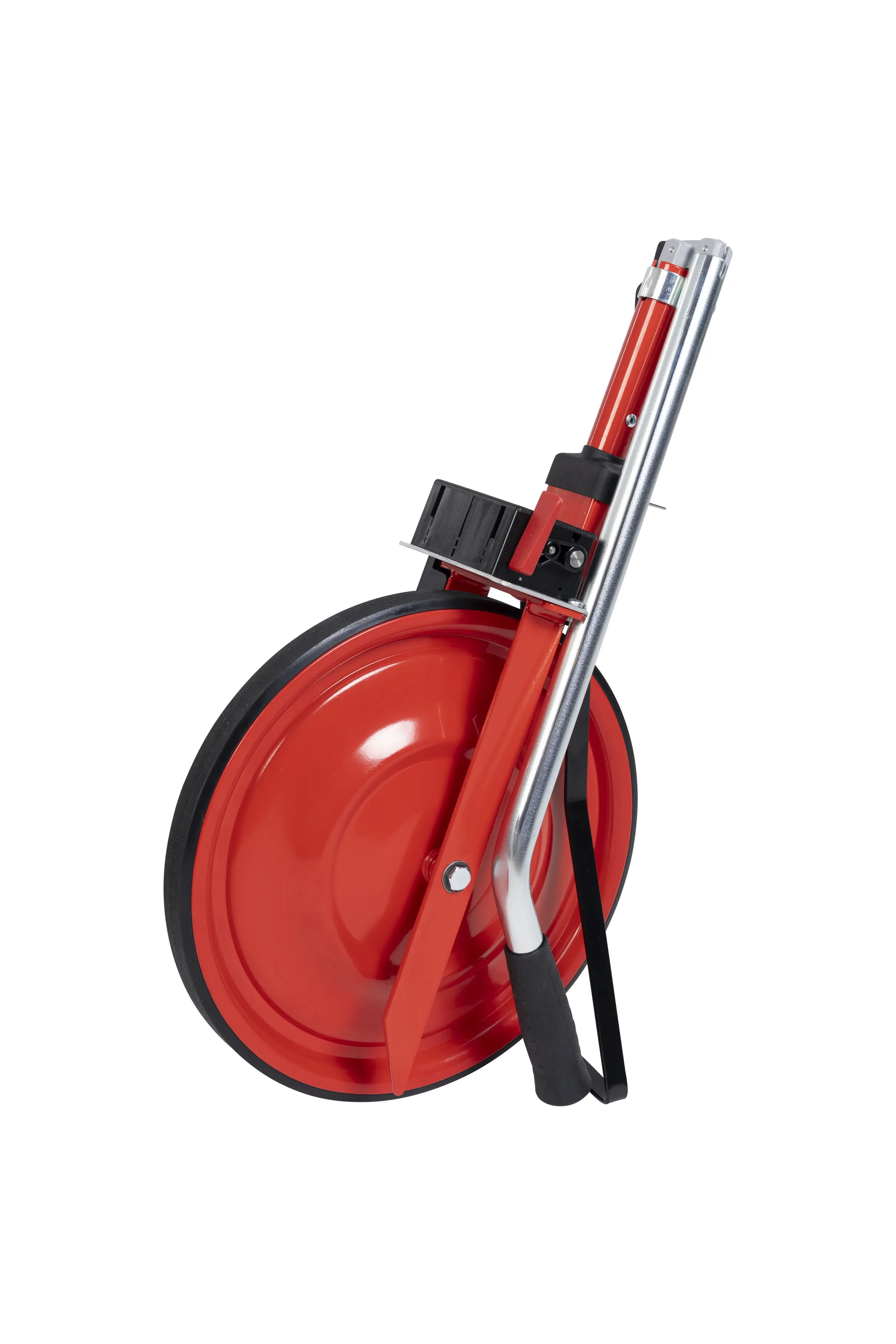 Sturdy solid disc wheel keeps the measuring wheel securely on track and ensures maximum running smoothness.