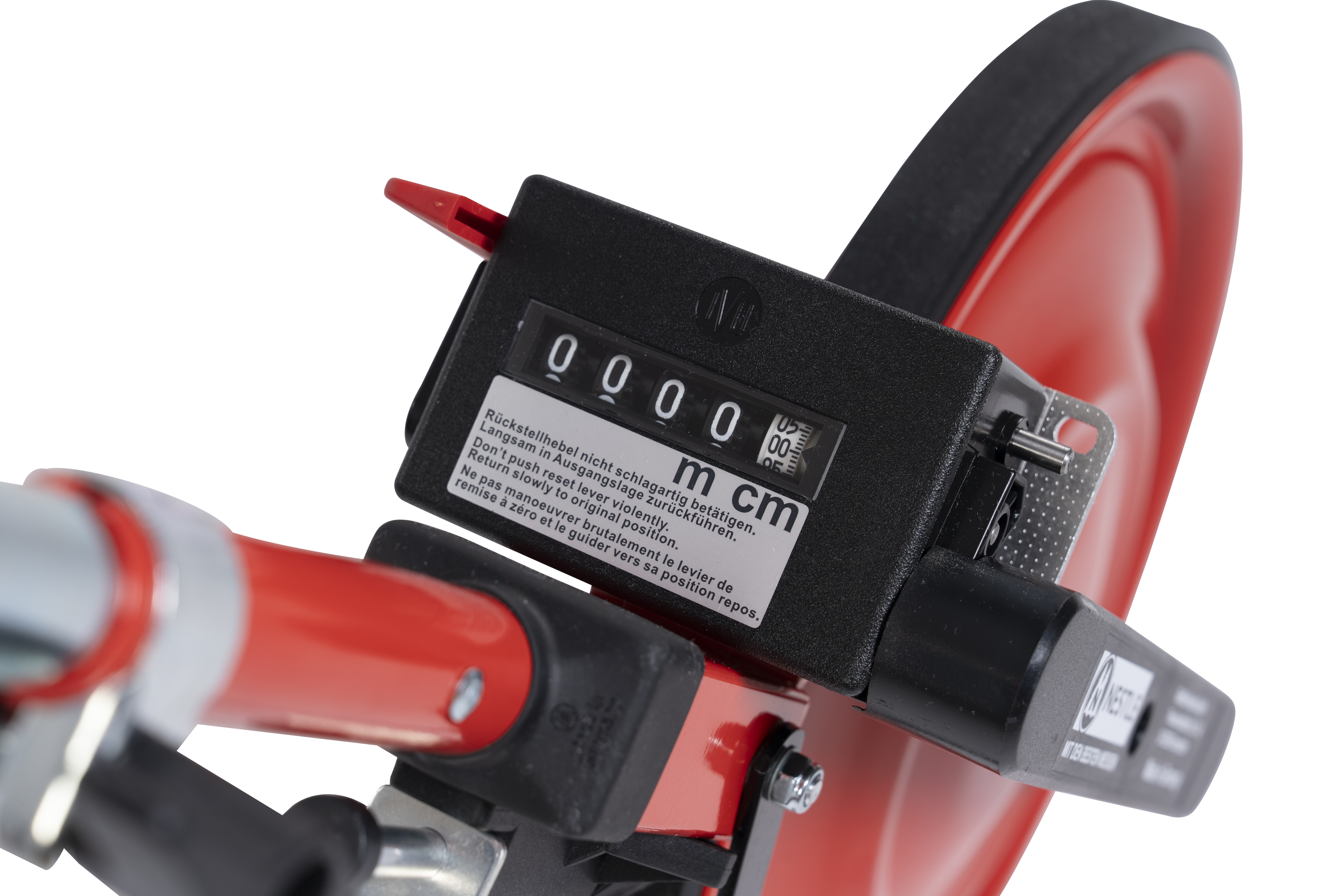 Quality counter mounted above the measuring wheel, easy to read from a standing position.