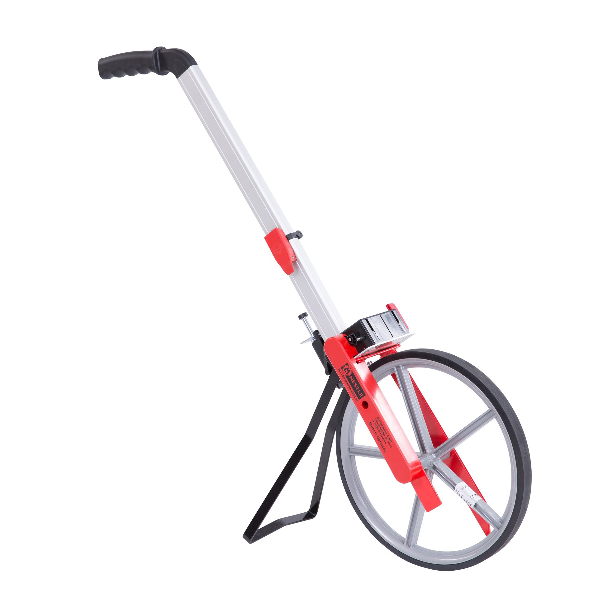 Les odomètre sont utilisés pour mesurer les distances sur un terrain plat. On le fait rouler le long du parcours de mesure en le tenant par un manche de guidage vers l'avant. L'affichage de la distance parcourue se fait au moyen d'un compteur. Les domaines d'application typiques sont : l'utilisation par les autorités, la construction de routes et de voies ferrées, l'agriculture et la sylviculture, l'aménagement paysager et partout où des mesures de distances moyennes à longues sont requises. Choisissez des roues de mesure à rayons avec un faible poids de transport. Le compteur de qualité enregistre les distances dans le sens de la marche et effectue des soustractions dans le sens inverse. Ce odomètre est équipé d'une béquille, d'un frein intégré et d'un manche de guidage pliable. Les odomètre NESTLE sont toujours "Made in Germany".