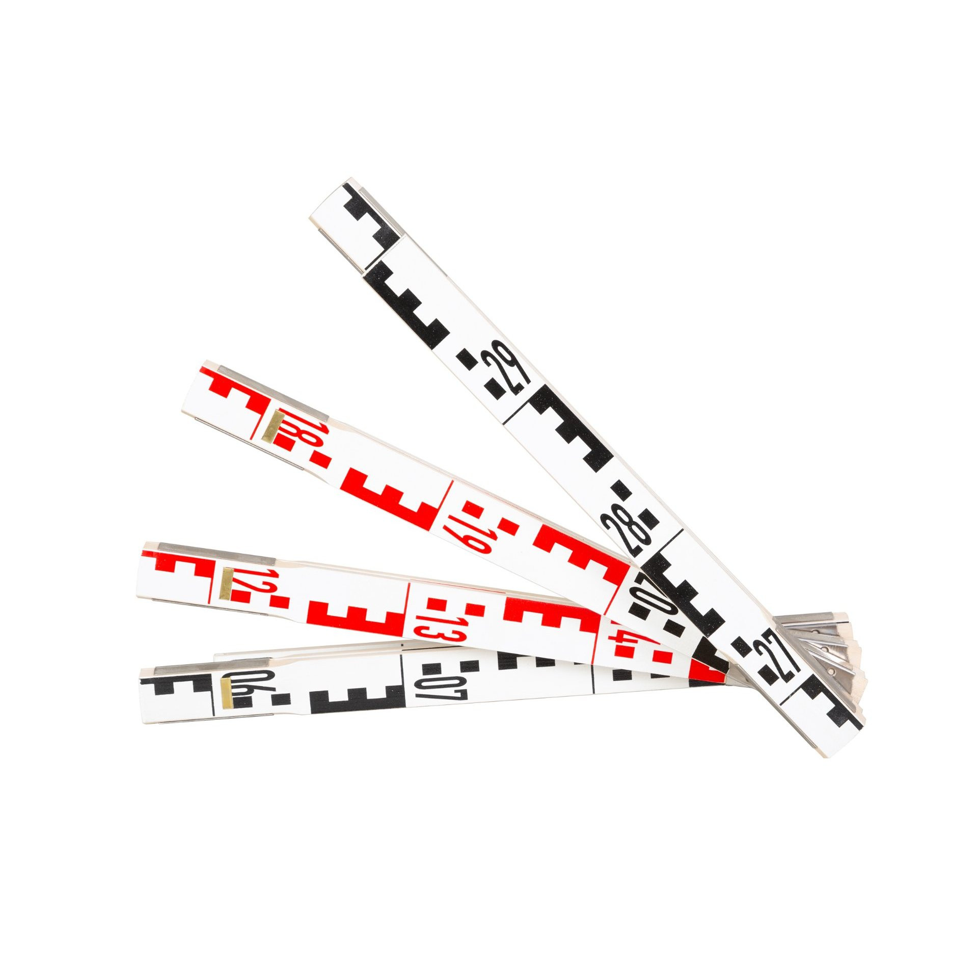 Le mètre de nivellement fabriqué à partir de bois sélectionnés convient pour une utilisation avec un niveau optique. Il comporte une graduation E sur la face avant et une échelle métrique classique sur la face arrière. Un vernis résistant aux intempéries évite l'abrasion des graduations et l'endommagement des maillons.