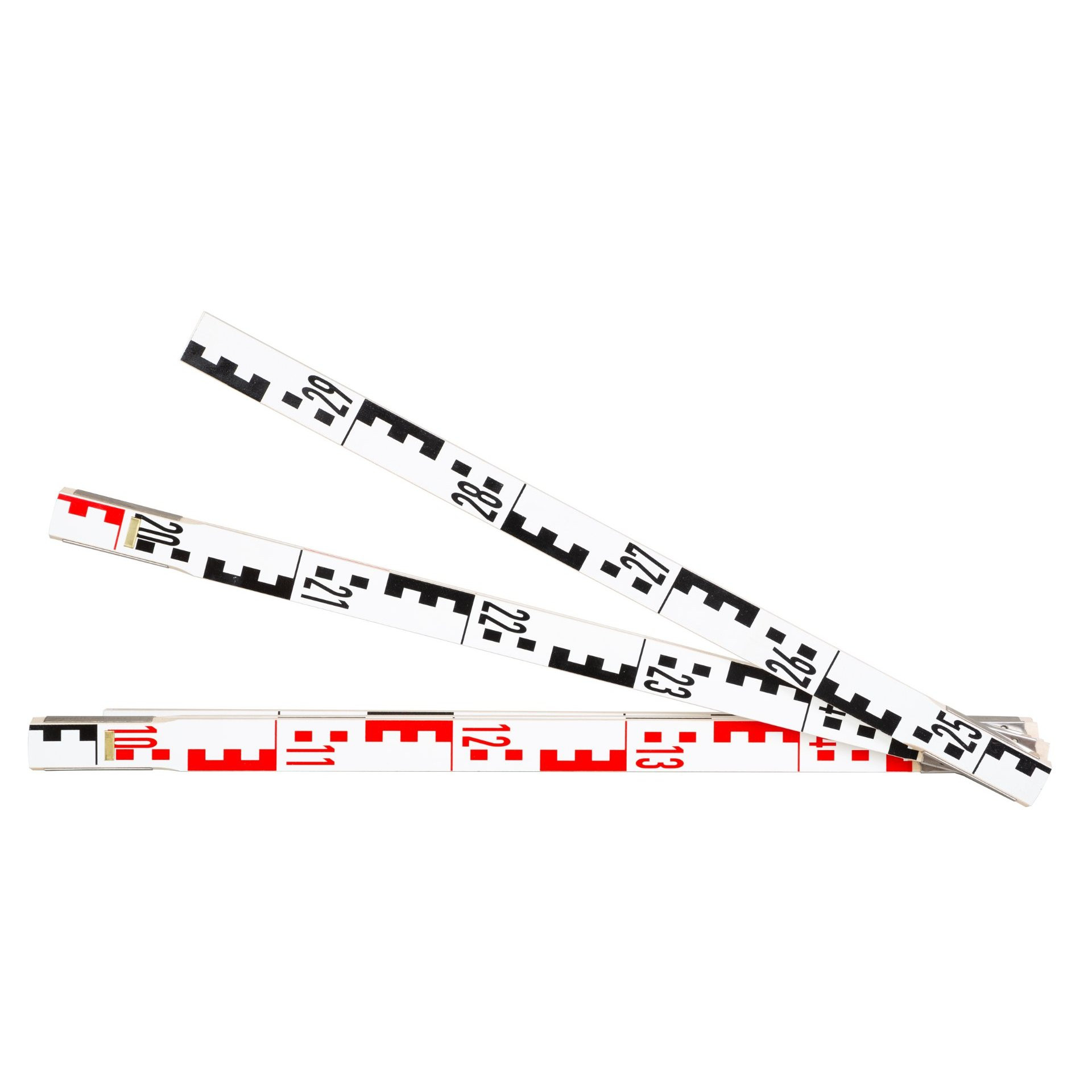 Le mètre de nivellement fabriqué à partir de bois sélectionnés convient pour une utilisation avec un niveau optique. Il comporte une graduation E sur la face avant et une échelle métrique classique sur la face arrière. Un vernis résistant aux intempéries évite l'abrasion des graduations et l'endommagement des maillons.