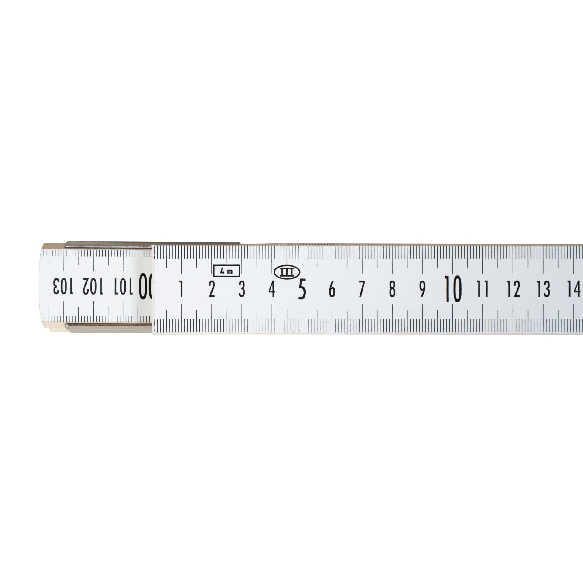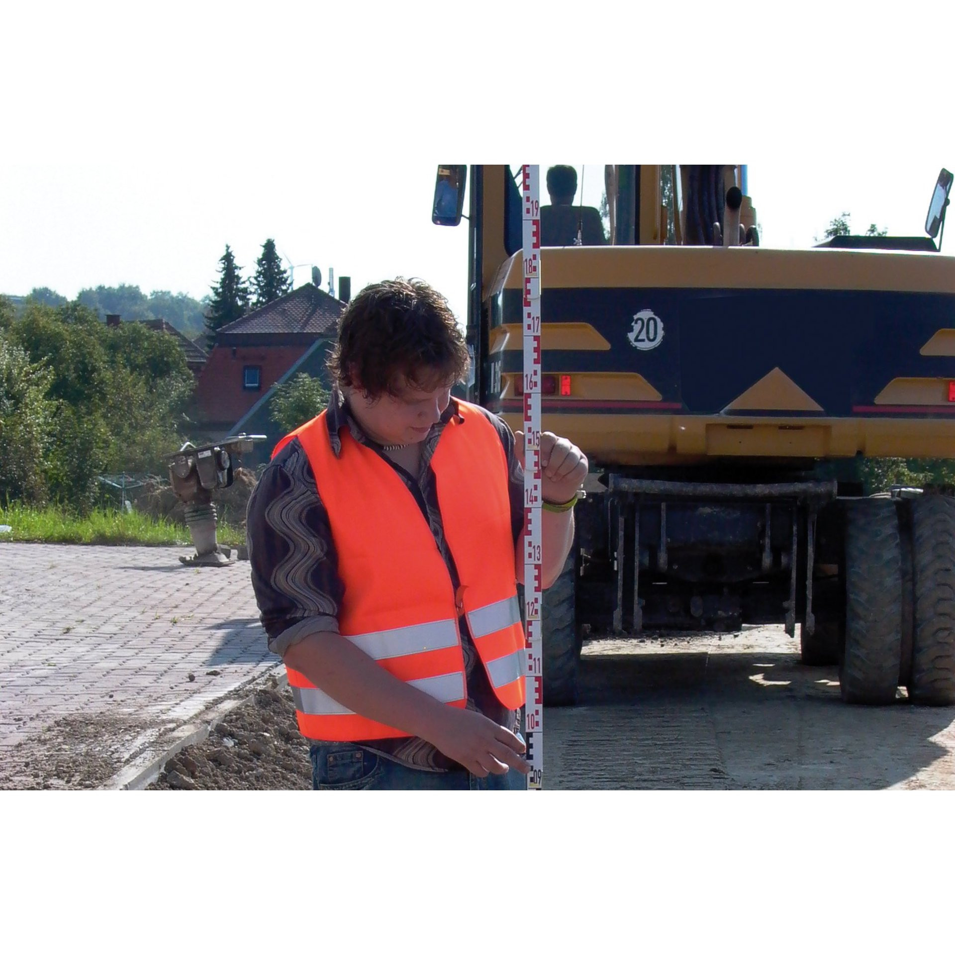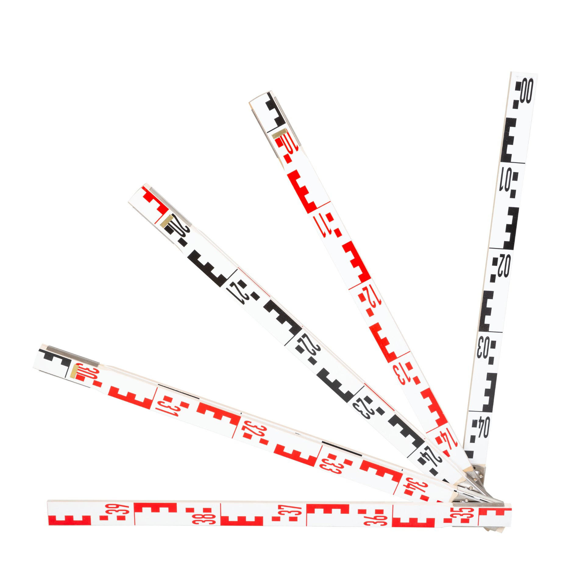 Le mètre de nivellement fabriqué à partir de bois sélectionnés convient pour une utilisation avec un niveau optique. Il comporte une graduation E sur la face avant et une échelle métrique classique sur la face arrière. Un vernis résistant aux intempéries évite l'abrasion des graduations et l'endommagement des maillons.
