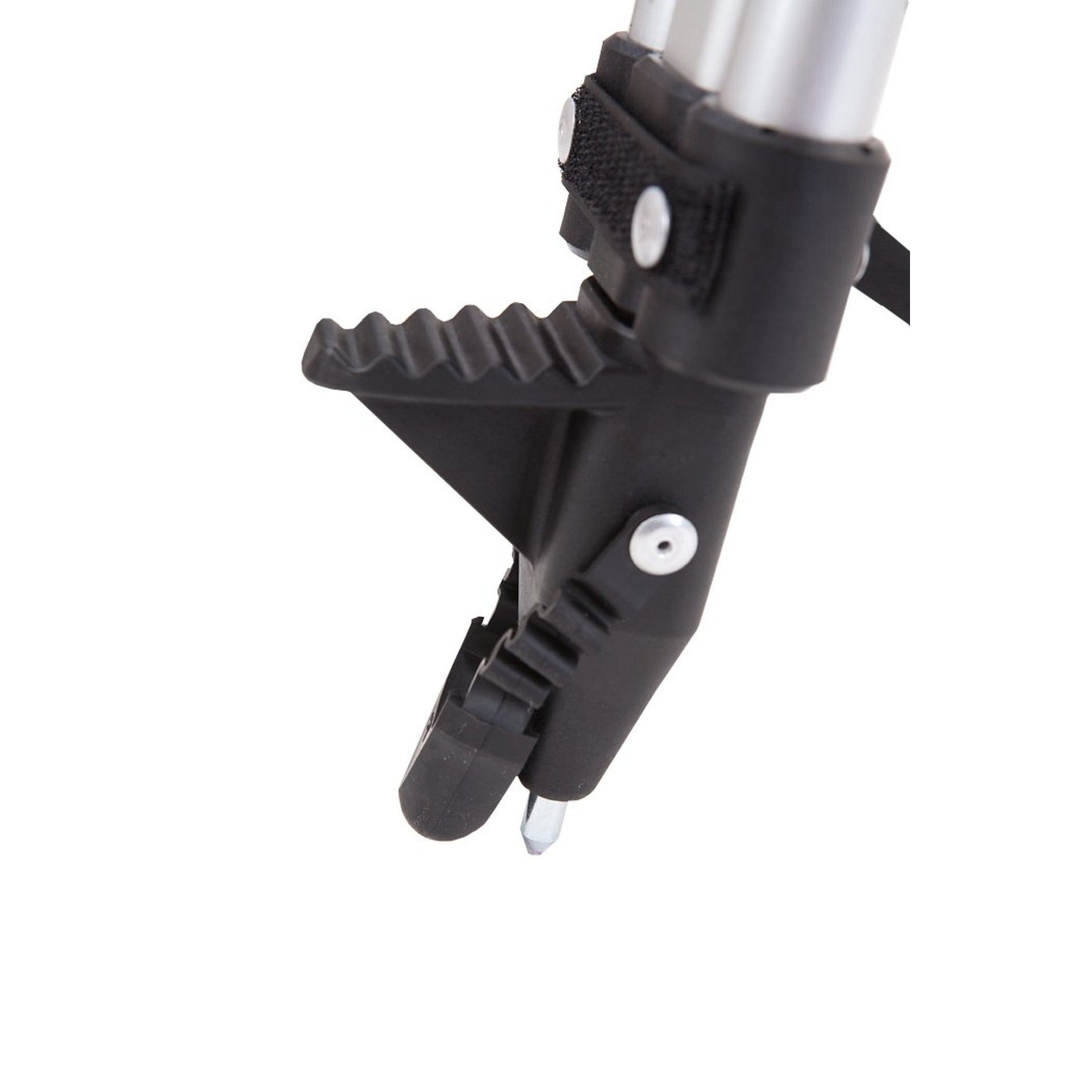Si nécessaire, des capuchons en caoutchouc peuvent être rabattus sur les pointes des jambes du trépied, ce qui permet une installation sûre sur des surfaces lisses tout en protégeant les sols fragiles tels que le parquet ou le carrelage lors de travaux en intérieur.