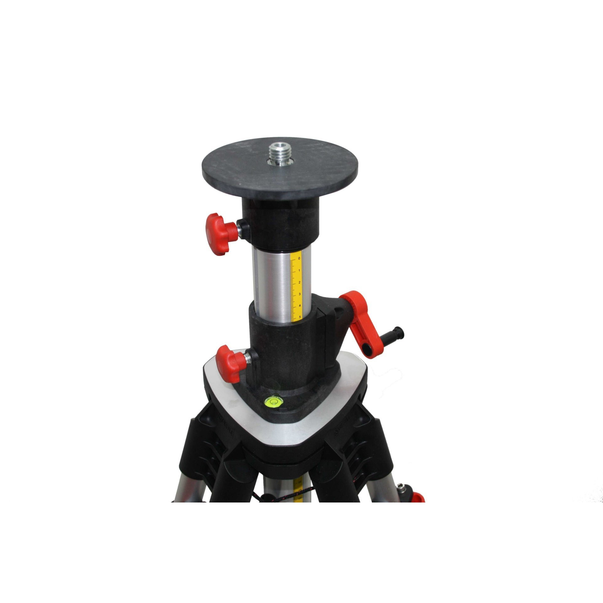La course de manivelle de 35 cm permet d'atteindre très précisément une hauteur donnée. Grâce à la double réduction (course de manivelle de 1,2 cm par tour), la manivelle peut être déplacée confortablement même avec des appareils laser lourds.