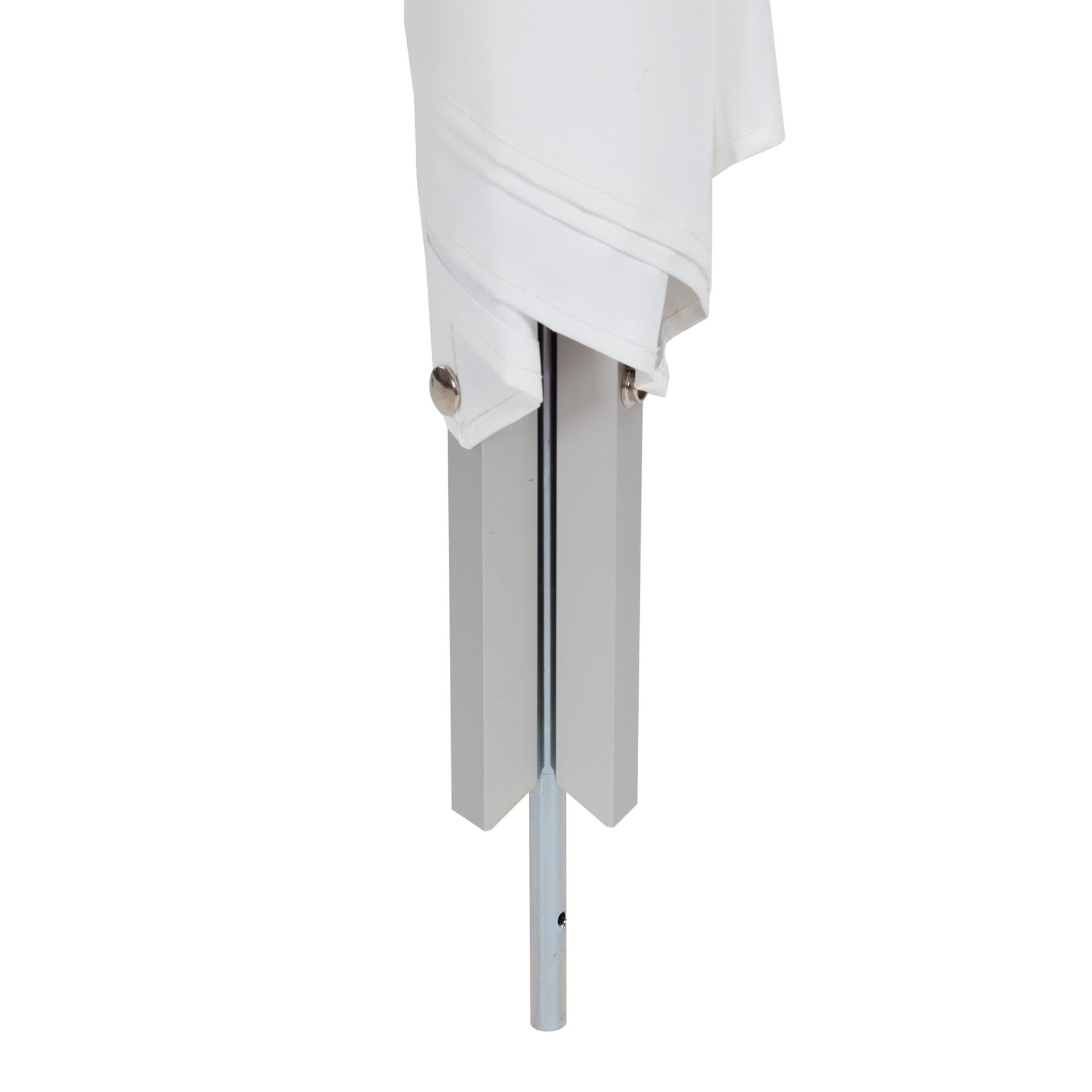 • Um den wechselnden Wetterbedingungen zu trotzen, sind die Gestelle robust und rostgeschützt aus eloxiertem Aluminium bzw. pulverbeschichtetem Stahl (Federmechanismus).