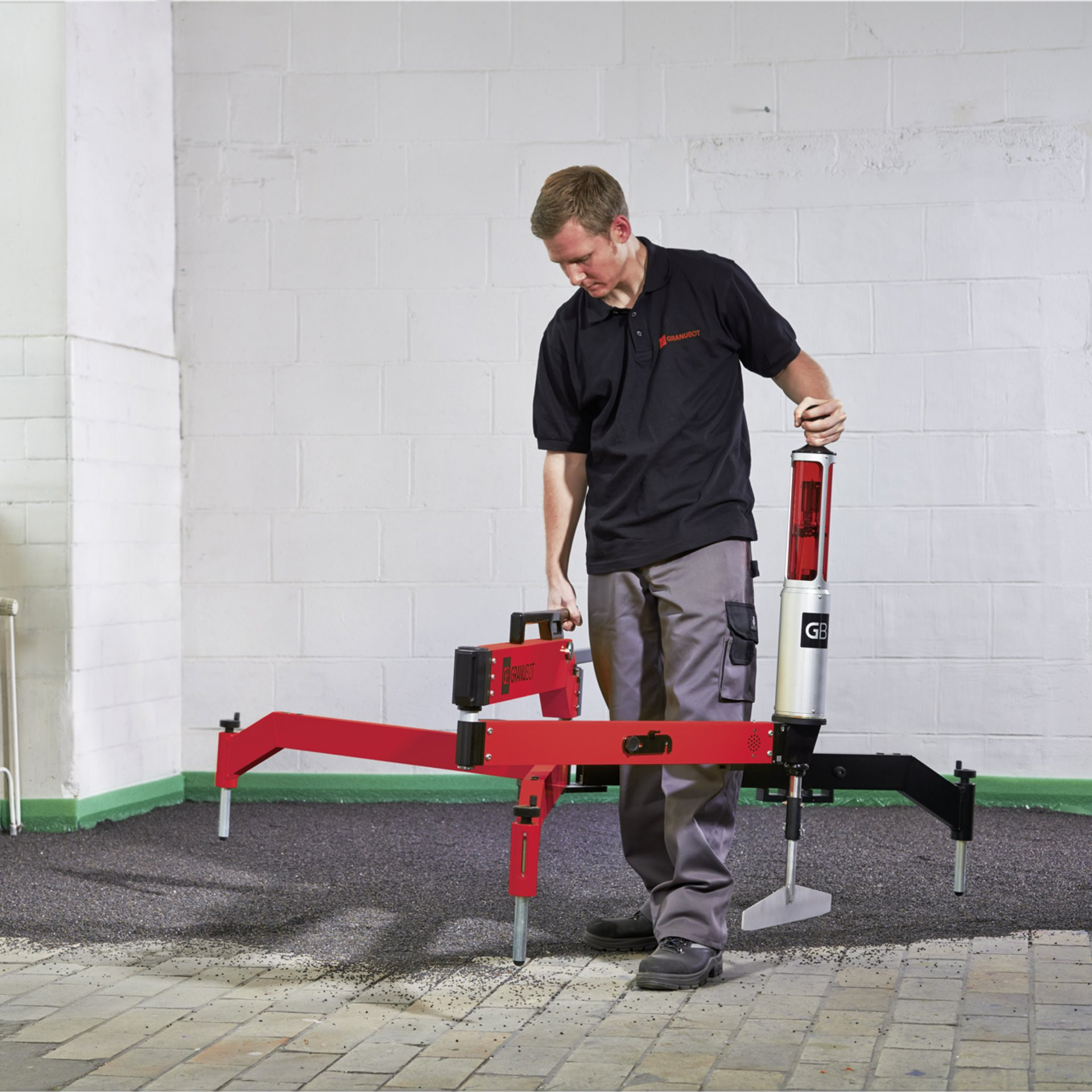 Mit dem Granubot verteilen Sie gebundene und ungebundene Schüttungen, Splitt 8/16, Fließestrich, Spachtelmassen und Fliesenkleber präzise, schnell und ergonomisch auf die gewünschte Einbauhöhe.