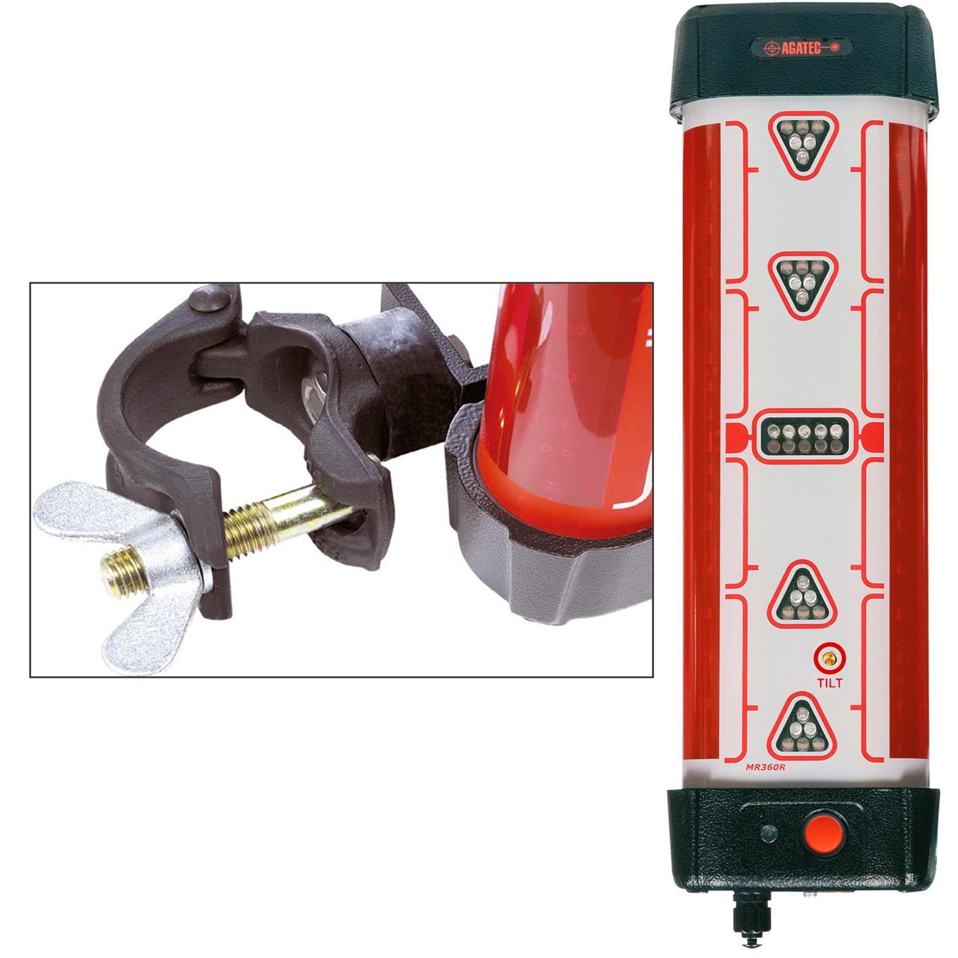Der Maschinenempfänger MR360 mit Klammerbefestigung liefert akkurate Höheninformationen für alle visuellen Maschinensteuerungsanwendungen. Möglich machen das große 360°-Erkennungsfenster, die die Strahlen von Rotationslasern aus jedem Winkel erfassen können. Der integrierte, vertikale Indikator überwacht den Winkel des Stabs und gibt an, ob dieser lotrecht oder zu wenig bzw. zu stark ausgefahren ist. Die Anzeige zeigt Richtungspfeile für präzises Einstellen des Auslegers an. Der Empfänger lässt sich einfach einrichten.