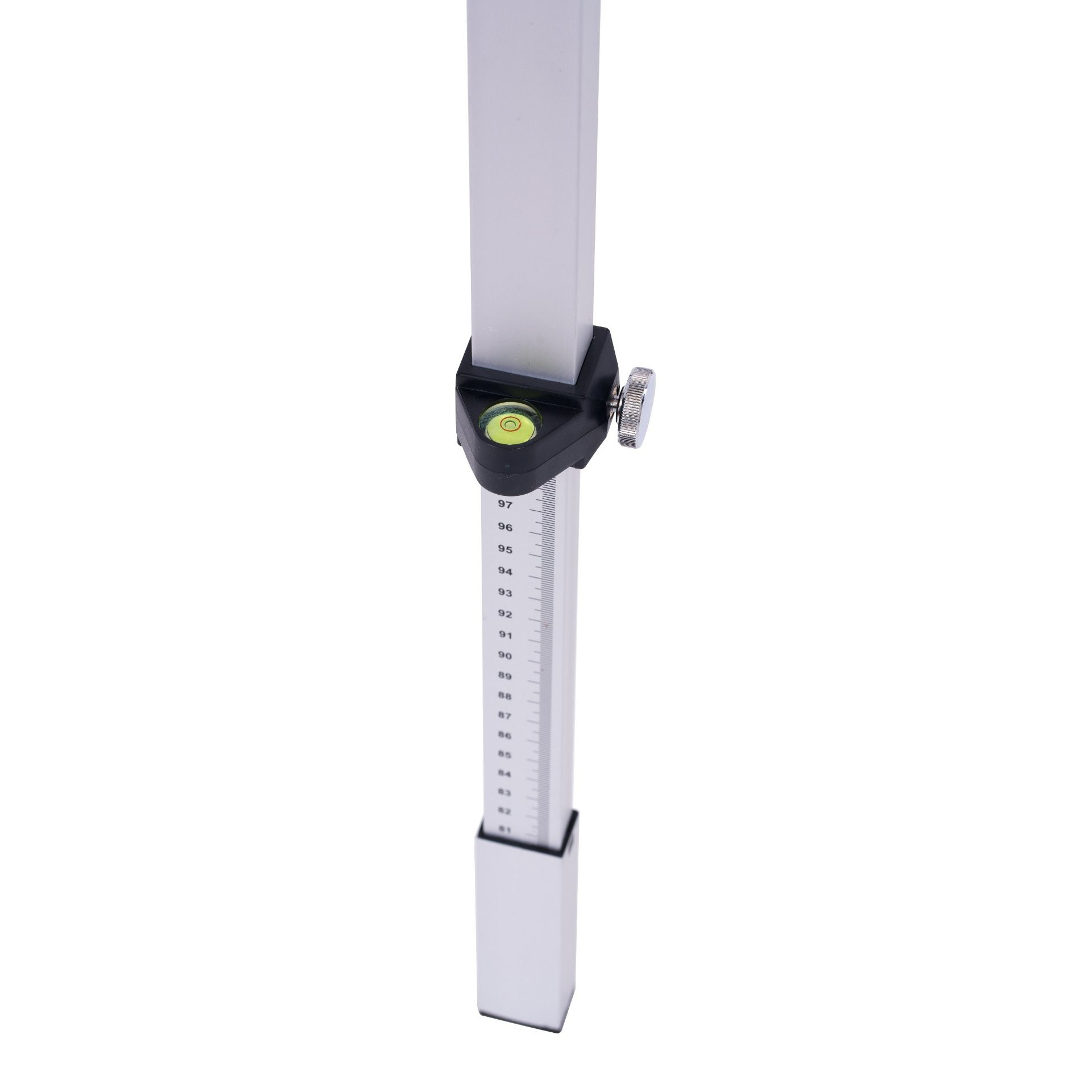 Die Laserlatte für Empfänger von Rotationslasern, mit Klemmhebel-Gleitadapter, ist das optimale Zubehör bei der Bestimmung eines Niveaus ohne zu Rechnen. Das leicht zu tragende eloxierte Aluminiumprofil liegt einwandfrei in der Hand und ist gegen jegliche Witterungseinflüsse geschützt. Diese Laserlatte wird mit einem Gleitadapter mit Klemmhebel geliefert. Der Gleitadapter vereinfacht die Ablesungen an der Laserlatte, die Klemmung mit Klemmhebel ist besondert ergonomisch. Die zweifarbige Latteneinteilung erleichtert die Bestimmung eines Niveaus. Der obere Teil ist absteigend von 50 cm bis 0 cm unterteilt und rot unterlegt. Der untere Teil dagegen ist silbrig unterlegt und aufsteigend von 0 cm bis 50 cm unterteilt. So sind Abweichungen vom Niveau einfach und ohne Berechnung ablesbar. Die Laserlatte mit dem Empfänger an der Null- Markierung wird bis zur Empfangsebene ausgezogen und fixiert. Eine weitere Skala an der Vorderseite zeigt Ihnen die Höhe des Null-Niveaus zum Bodenpunkt der Latte an. Ideal für alle Arbeiten mit Rotationslasern.