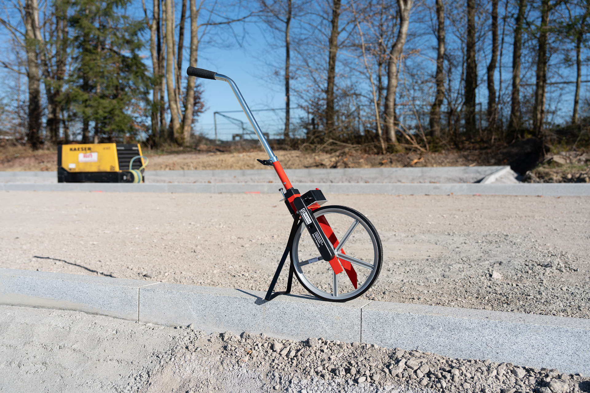 Messräder werden für die Vermessung von Strecken auf ebenem Gelände eingesetzt. Man rollt es, an einer Führungsstange nach vorne haltend, entlang der Messstrecke. Die Anzeige der abgefahrenen Strecke erfolgt mittels eines Zählwerkes. Typische Anwendungsgebiete sind: behördlicher Einsatz, Straßen- und Gleisbau, Land- und Forstwirtschaft, Landschaftsbau und überall dort, wo Streckenmessungen über mittlere bis lange Distanzen gefragt sind. Wählen Sie Messräder mit Speichenrad mit geringem Transportgewicht. Das Qualitätszählwerk erfasst die Strecken in Laufrichtung und subtrahiert gegen die Laufrichtung. Dieses Messrad ist mit Abstellbügel, integrierter Bremse sowie einer klappbaren Führungsstange ausgerüstet. NESTLE Messräder sind immer "Made in Germany".