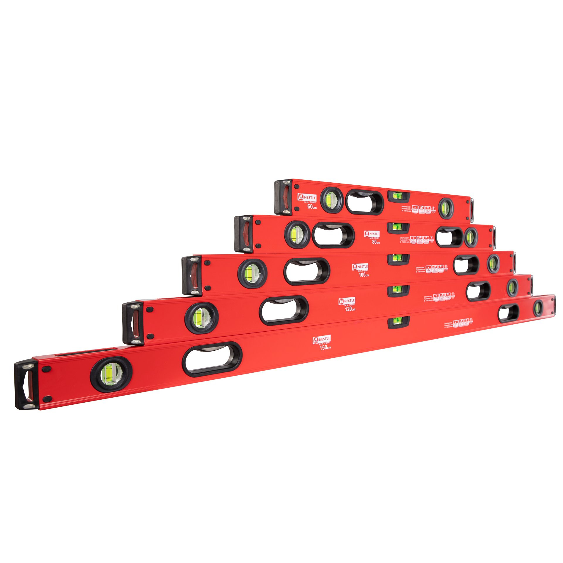 Die Profi-Handwerkerwasserwaage Zeus hat eine vergrößerte Horizontallibelle