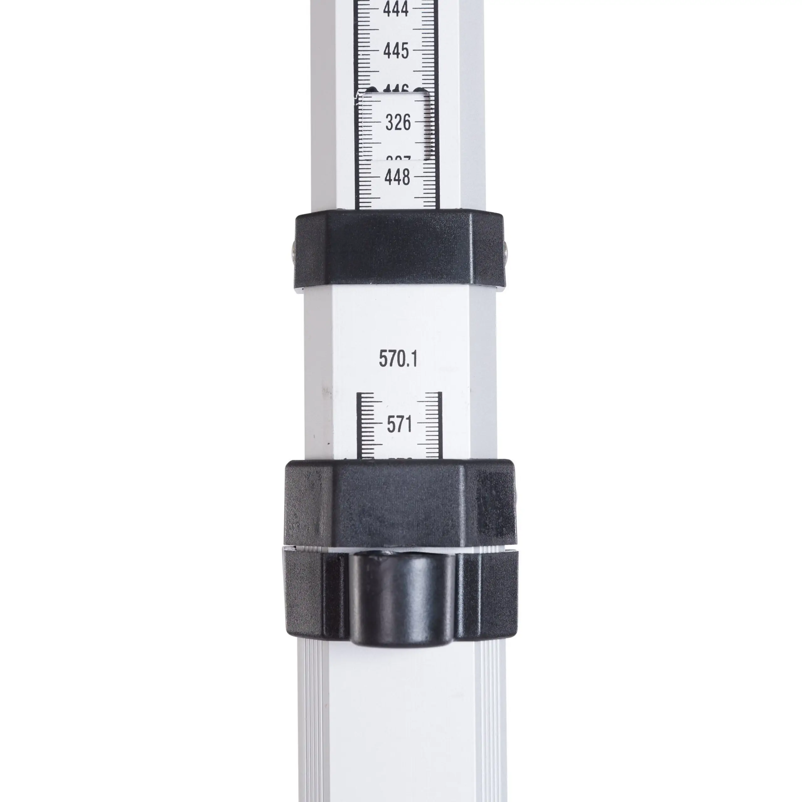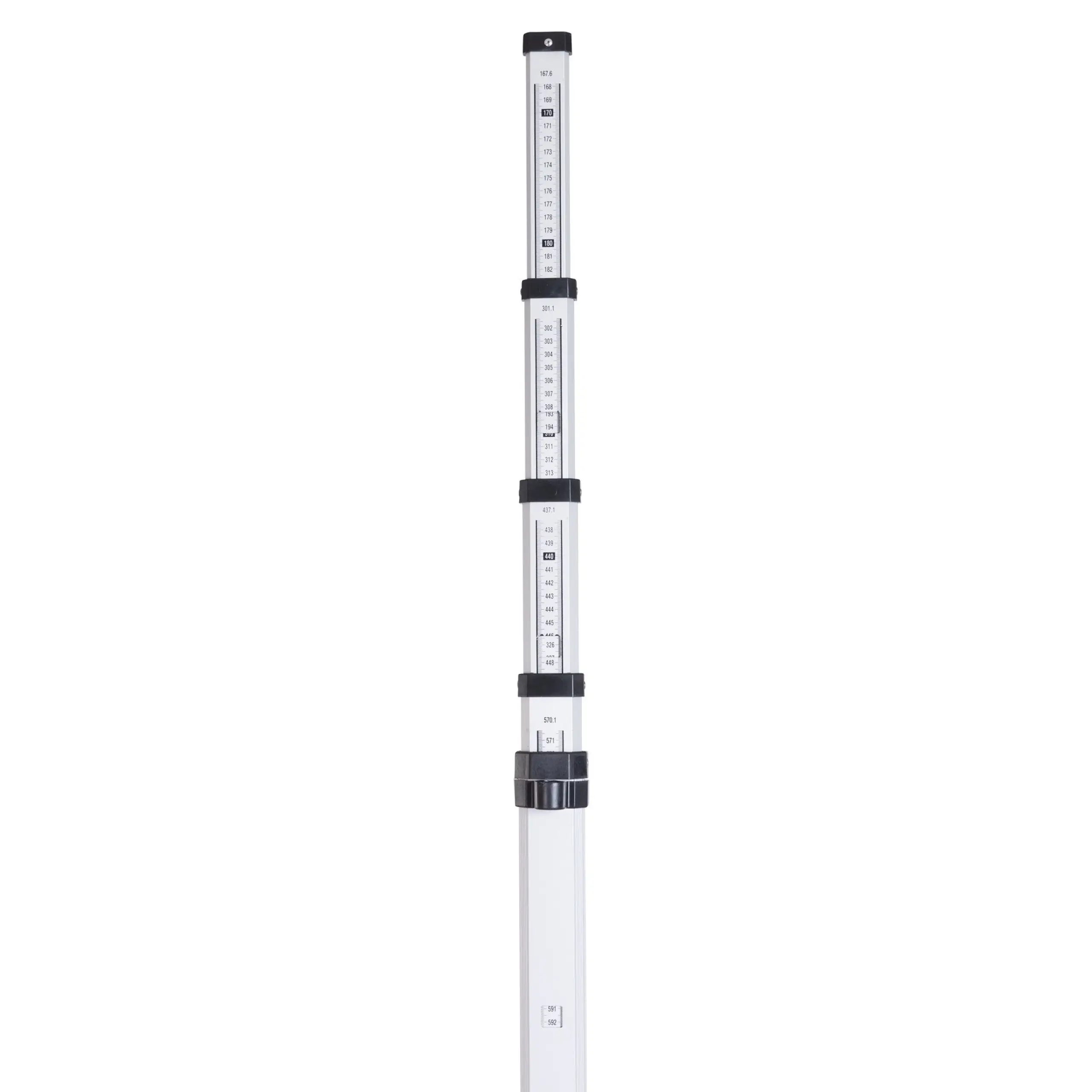 Teleskopnivelliermeter-Messlatten für Nivellements inklusive Tasche und Libelle. Dieser Tenimeter ist bis 7 m teleskopartig ausziehbar und mit der geringen Transportlänge und dem niedrigen Gewicht bequem zu transportieren. Die E-Teilung auf der Vorderseite mit abwechselnd rot und weiß lackierten Meterstücken. Das Modell 18205000 hat auf der Rückseite eine mm-Teilung zum Messen lichter Höhen. Die Teleskop-Nivelliermeter sind robust und werden den täglichen Anforderungen auf Baustellen jederzeit gerecht. Der Aufdruck ist durch überstehende Kanten vor Abrieb geschützt. Die stabile Druckknopfrasterung verhindert ein zusammensacken der Einzelteile. Durch die genaue Führung der einzelnen Elemente ist es leichtgängig und verkantet nicht.