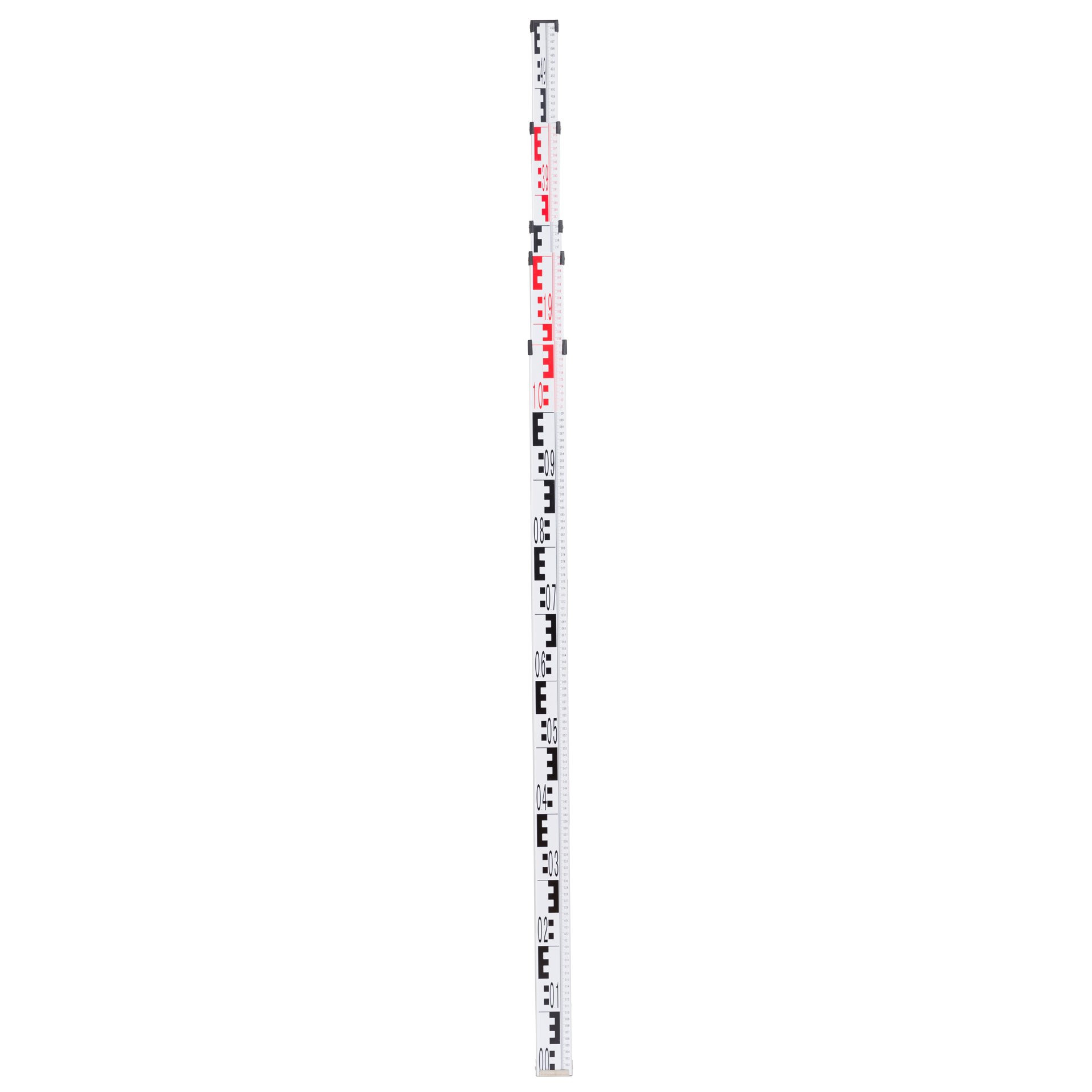 Teleskopnivelliermeter-Messlatten für Nivellements inklusive Tasche und Libelle. Dieser Tenimeter ist bis 5 m teleskopartig ausziehbar und mit der geringen Transportlänge und dem niedrigen Gewicht bequem zu transportieren. Die E-Teilung auf der Vorderseite mit abwechselnd rot und weiß lackierten Meterstücken. Dieses Modell hat zusätzlich eine mm-Teilung auf der Vorderseite und auf der Rückseite eine Skala um Stichmaße zu ermitteln. Die Teleskop-Nivelliermeter sind robust und werden den täglichen Anforderungen auf Baustellen jederzeit gerecht. Der Aufdruck ist durch überstehende Kanten vor Abrieb geschützt. Die stabile Druckknopfrasterung verhindert ein Zusammensacken der Einzelteile. Durch die genaue Führung der einzelnen Elemente ist es leichtgängig und verkantet nicht.